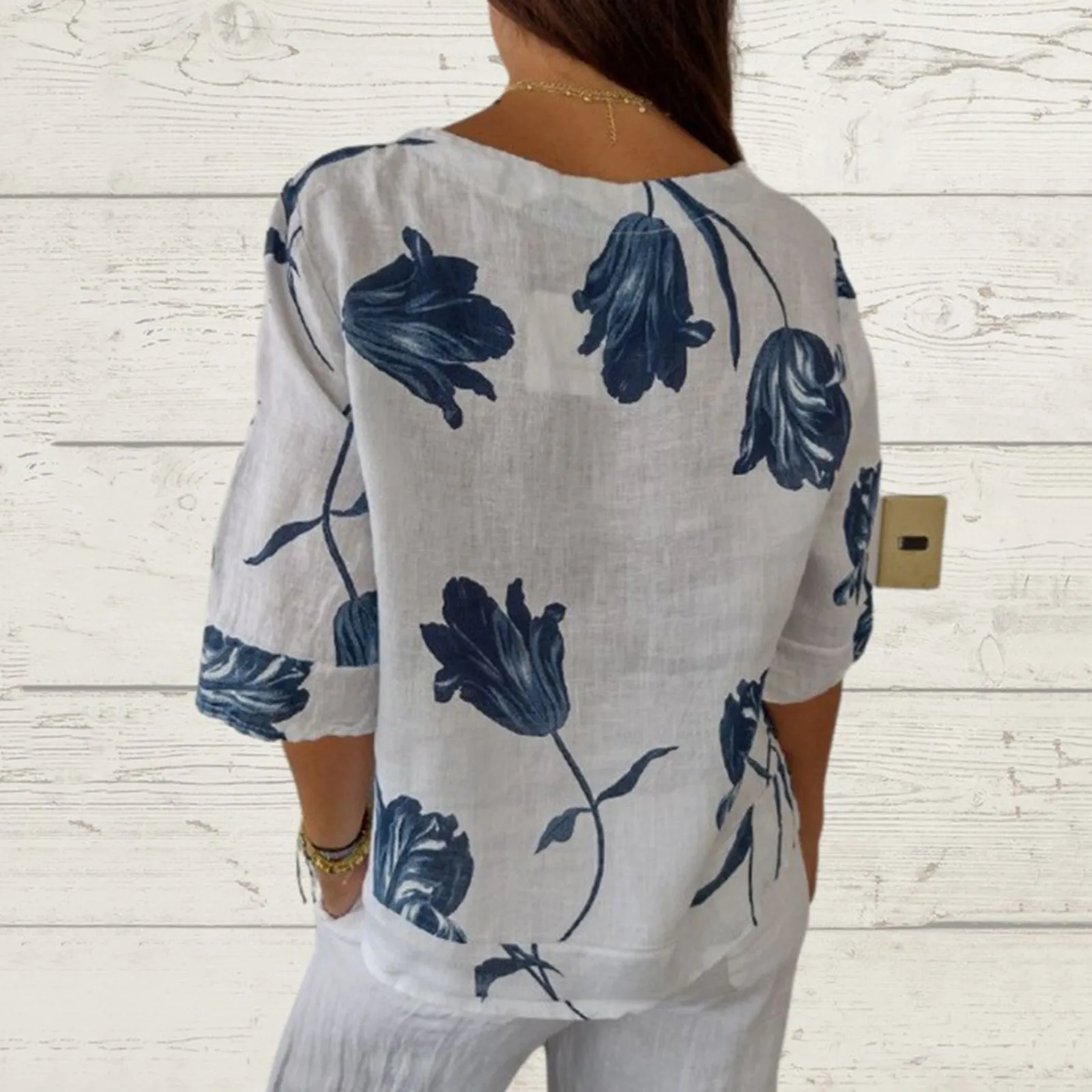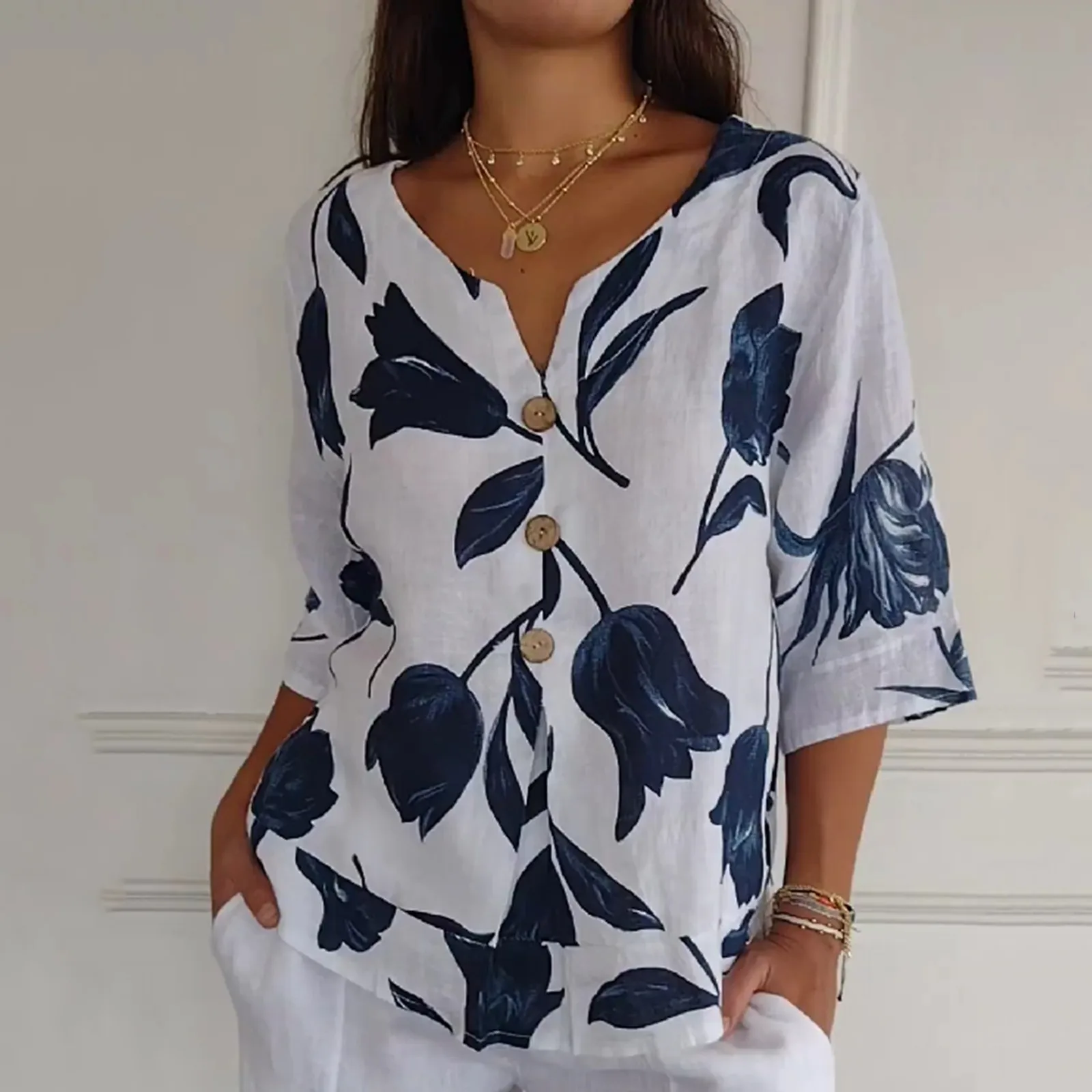 Women's Summer Tops Cotton Linen Basic Tops Versatile Pullover Elegant 3/4 Sleeve Plain Short Sleeve Tops Casual Retro T-Shirt with Three-Quarter Sleeve Blouse Tops Teenager Girls